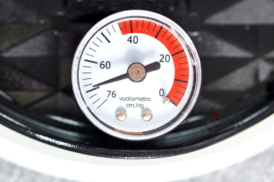 - Manometr zabezpieczony przed uderzeniami i w razie potrzeby może być w łatwy sposób wymieniony – w razie przypadkowego złamania, w zestawie konserwacyjnym znajduje się dedykowana śruba, która umożliwia użycie przyssawki bez manometru